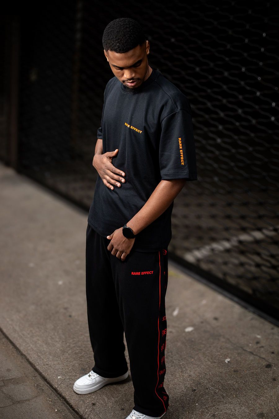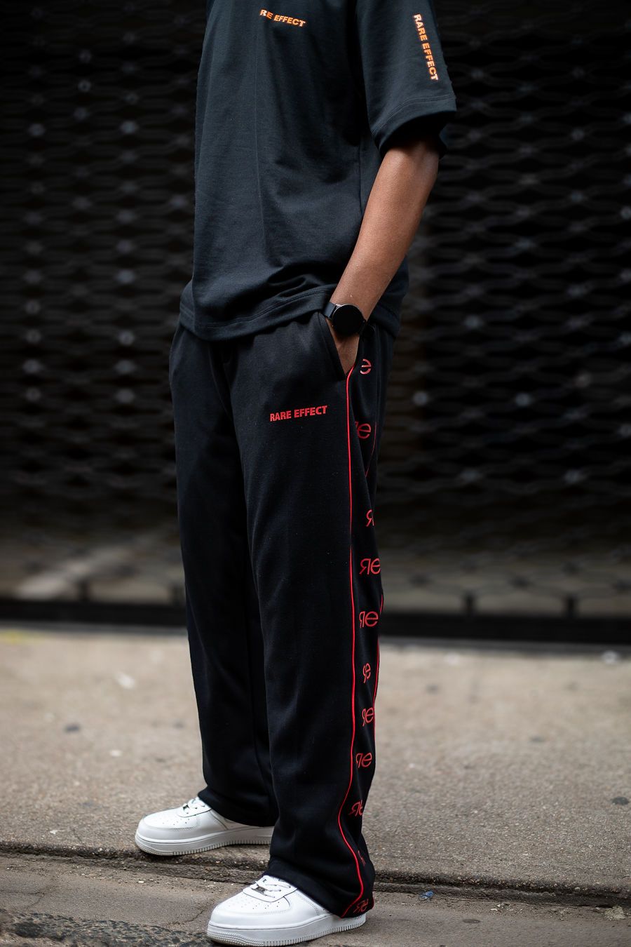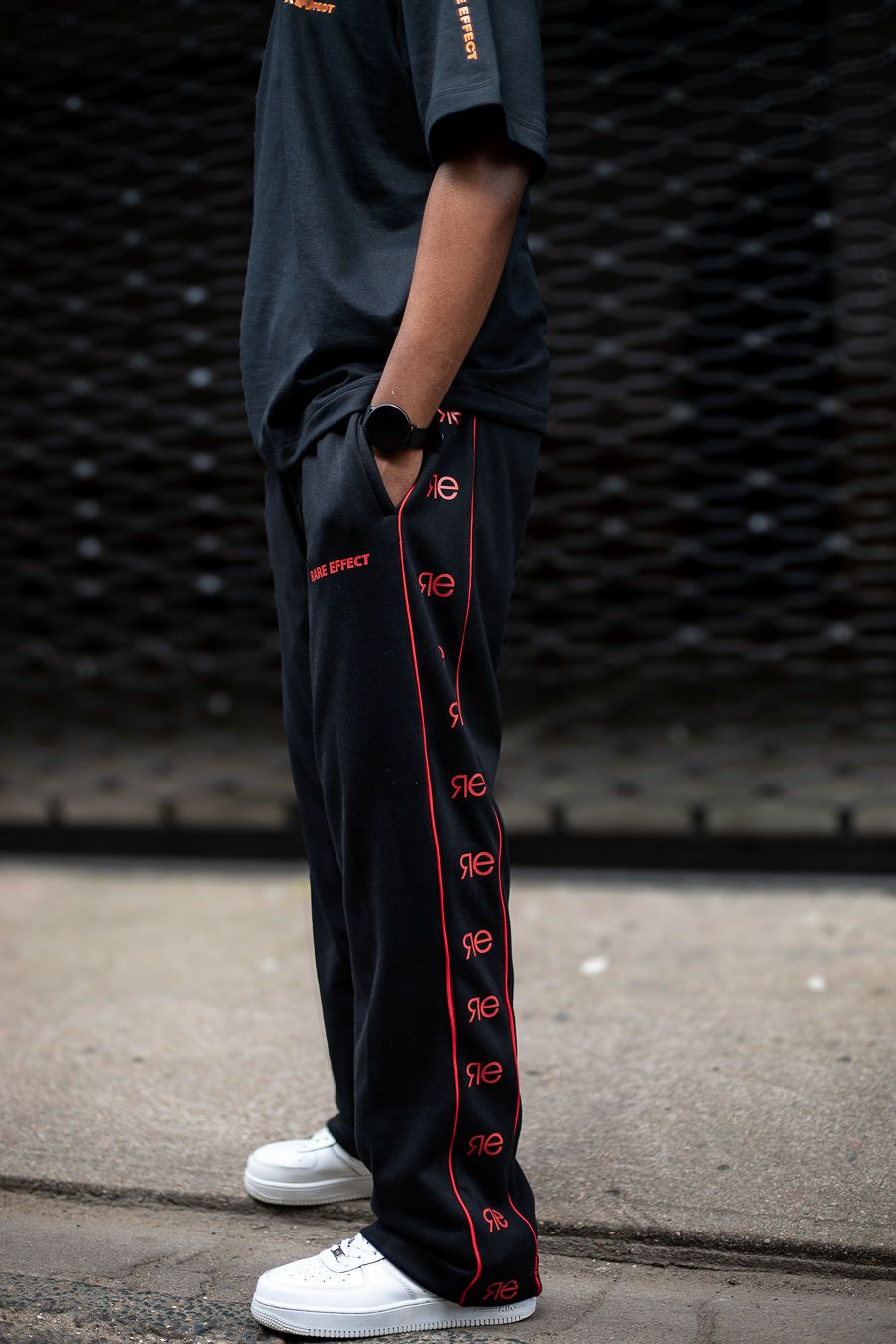 Wide fitted track pant Available in black and white
